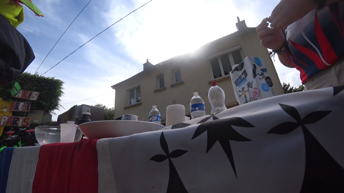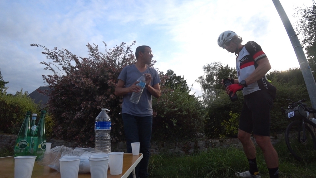 10:55 Ménéac (メネアック)の私設エイドに立ち寄り。ここでは水を頂く。ありがたい限り。