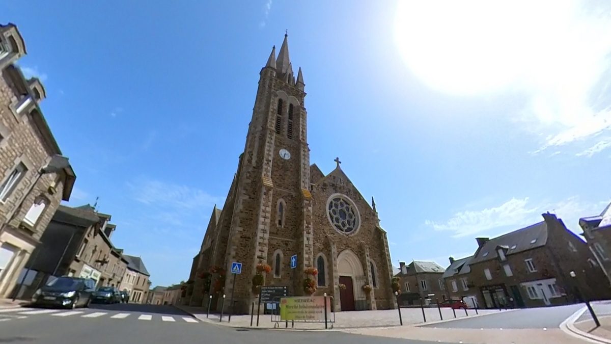 14:31 Médréac (メドレアック)を通過。どの街に行っても建物が興味深い。