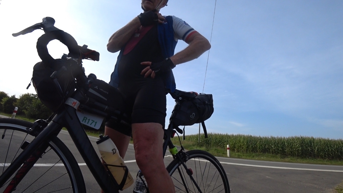 ブレストの時とは比べ物にならないくらい疲れ切った顔。食後に少し店の脇で座って休み、20分ほどの休憩で 13:20 再出発。